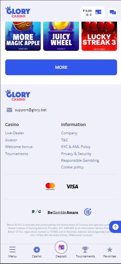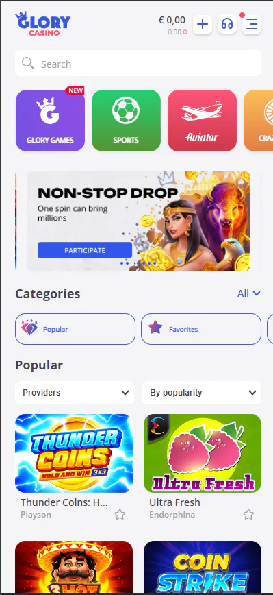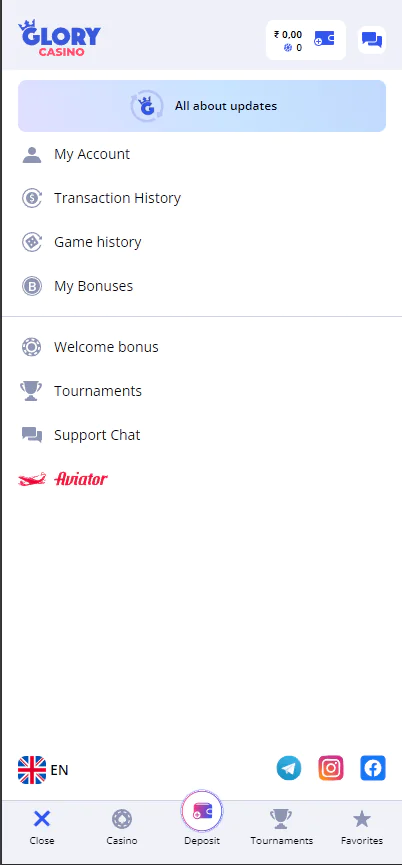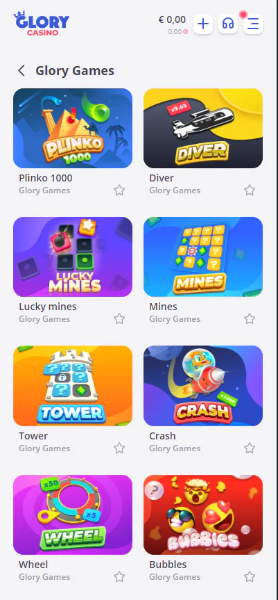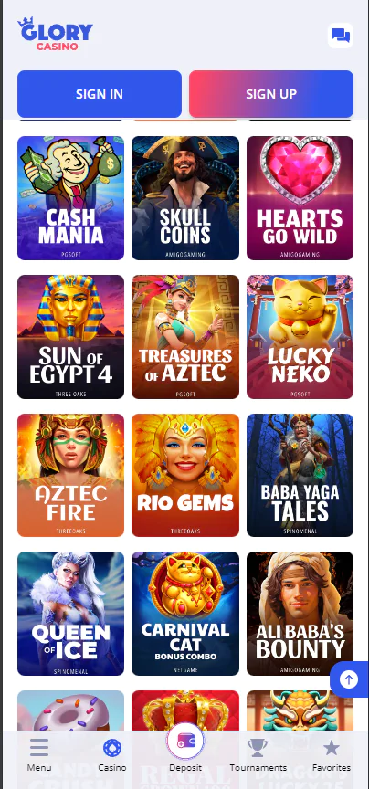 - Cross-platform synchronization that allows players to use their existing Glory Casino accounts;